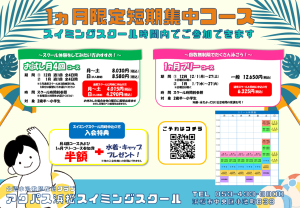 12月または1月の1ヶ月間通常のスイミングスクールをお試しできるコースです。