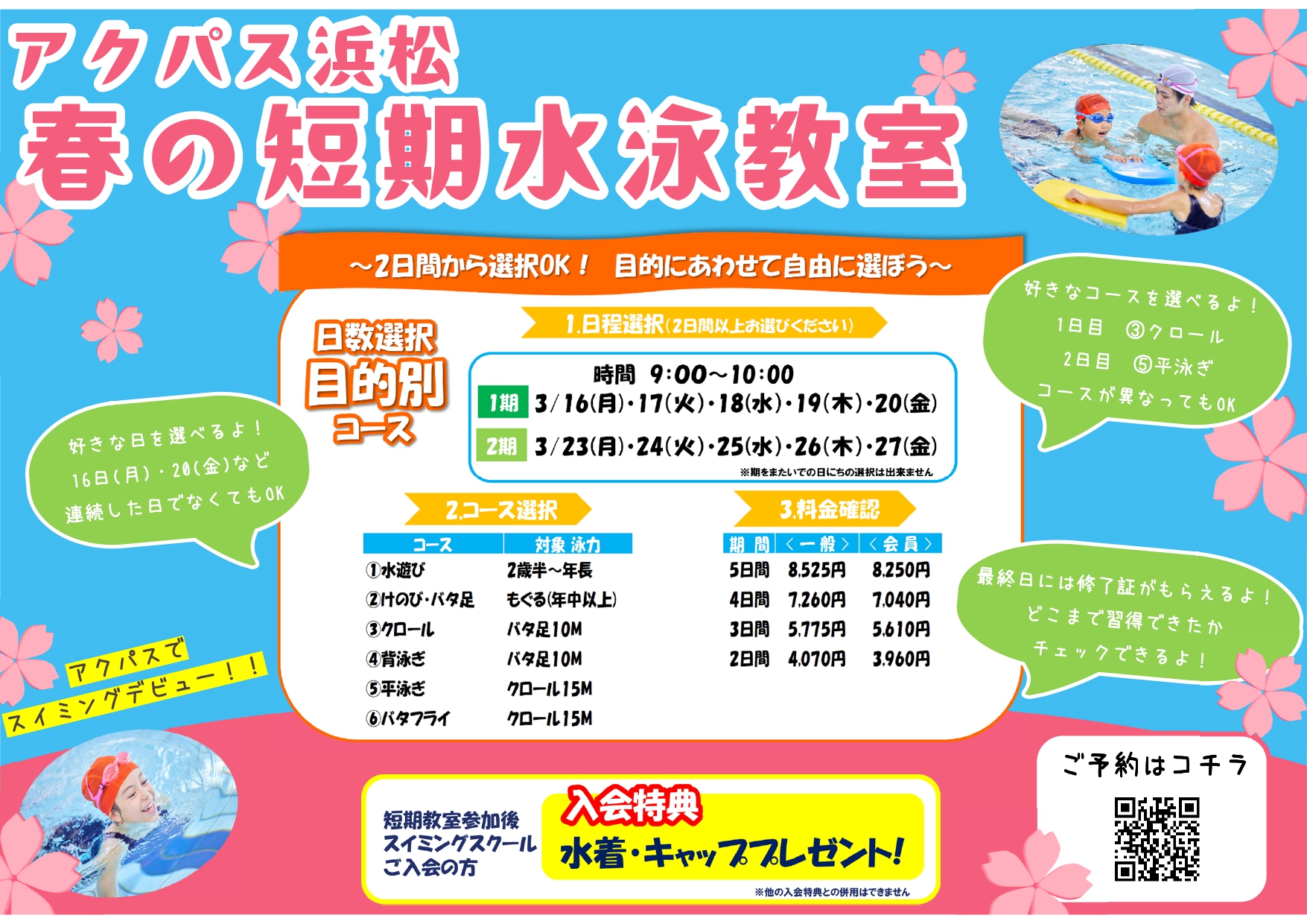 春の短期水泳教室申し込みスタート!
