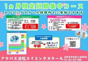 3月または4月の1ヶ月間通常のスイミングスクールをお試しできるコースです。