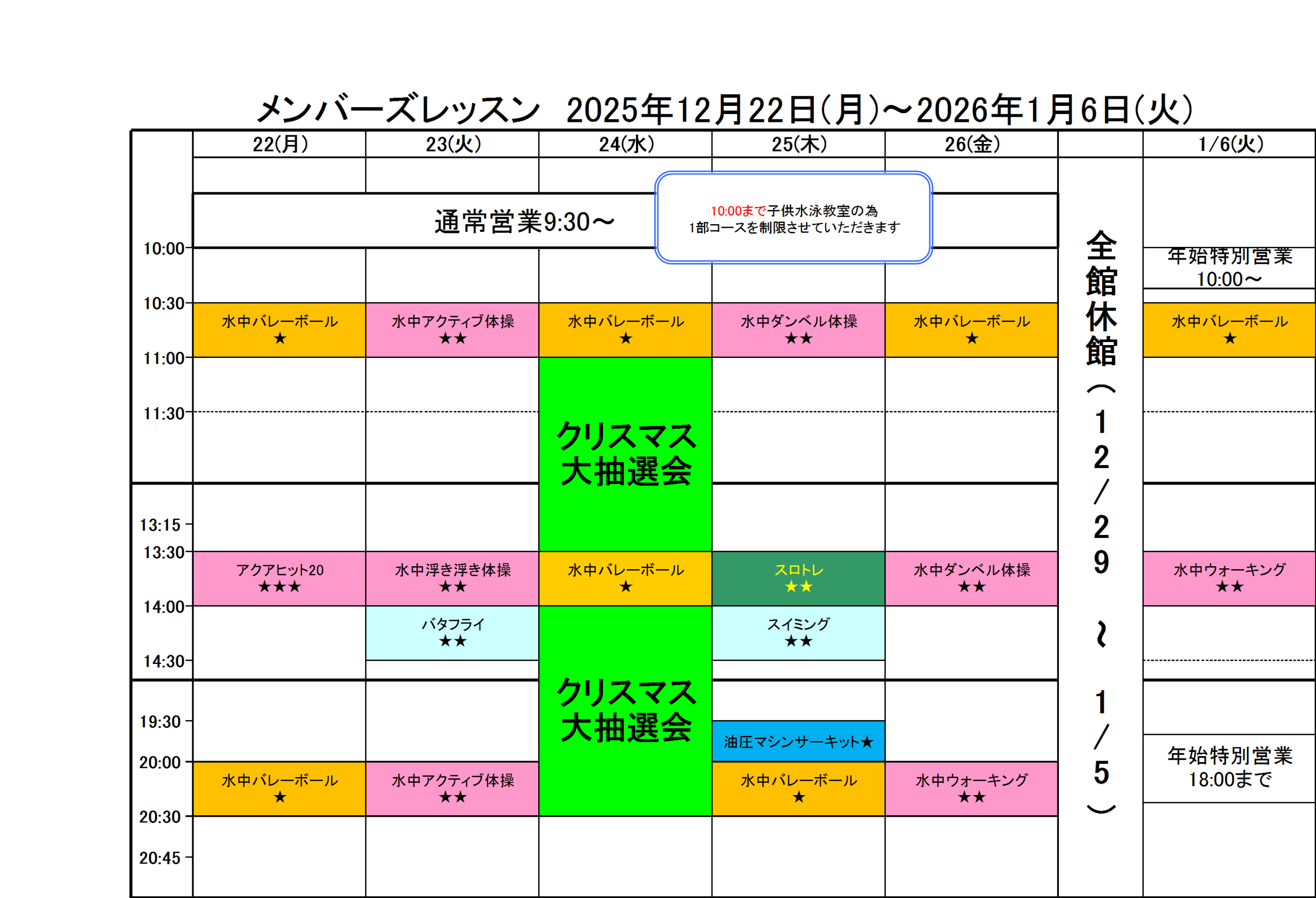 アクアフィットネス メンバーズレッスンスケジュール